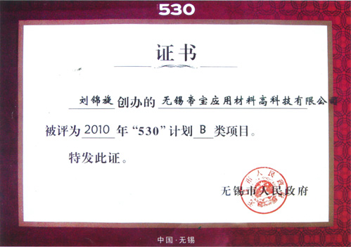 China Wuxi 530 Project Foreign High-Tech Entrepreneur Award